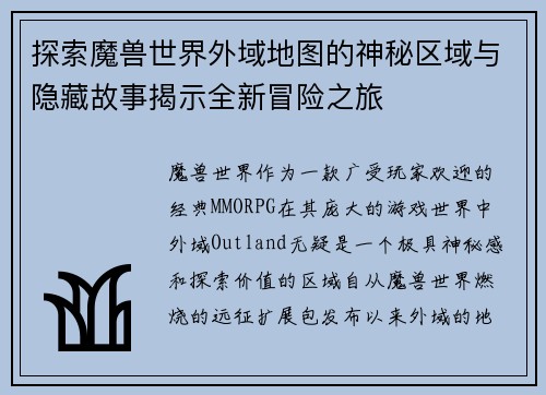 探索魔兽世界外域地图的神秘区域与隐藏故事揭示全新冒险之旅